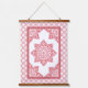 Dieses atemberaubende Tapestry verfügt über weiche rote Medaillons auf weißem Hintergrund. Dieses Tapisserie hat Holz auf der Oberseite und unten, was es sehr straff hängen lässt. Draußen grenzt ein kleines Medaillon an. In der Mitte befindet sich eine große, passende Medaille. Die Medaillen basieren auf handgefertigten Fliesen des Oregon Kachelmachers Fay Jones Day. Suchen Sie nach dem passenden Bereichsteppich.