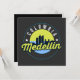 Schöne Medellin Kolumbien Flachgrusskarte Design zeigt die Skyline der Stadt in Antioquia Kolumbien. Für jeden Kolosse und Paisa eine tolle Idee. Kaufen Sie für Ihre Lieben an Christas oder Geburtstag.