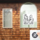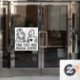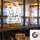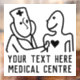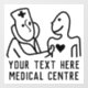 Klinik- oder Krankenhausfenster mit Schwarz-Weiß-Illustration zur Pflege, mit Schwerpunkt auf Herzgesundheit. Medizinischer Mitarbeiter mit Stethoskop, der einem Patienten einen Karo gibt.
