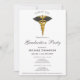 Medical Gold Caduceus Black Wings Graduation Photo Einladung