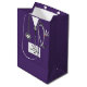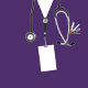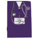 Creative doctor gift bag design featuring purple hospital scrubs, stethoscope and funny Swiss Army knife. Edit text to add physician's name.