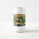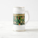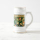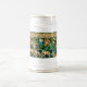 Bier Stein mit William Morris’ Tapestry Verdure with Deer and Shields (1891-1894). Eine grüne Hirschlandschaft, die aus einem Wasserbecken trinkt und von Blätter von Bäumen in einem grünen Wald gegessen wird. Über ihnen hängen die Schilde der Ritter des Runden Tisches. Ein großartiges Geschenk für Arthuriana-Liebhaber und Viktorianische Kunstsammler.