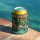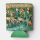 "Can Cooler" mit William Morris Tapestry Verdure with Deer and Shields (1891-1894). Eine grüne Hirschlandschaft, die aus einem Wasserbecken trinkt und von Blätter von Bäumen in einem grünen Wald gegessen wird. Über ihnen hängen die Schilde der Ritter des Runden Tisches. Ein großartiges Geschenk für Arthuriana-Liebhaber und Viktorianische Kunstsammler.