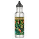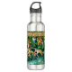 Wasserflasche mit William Morris’ Tapestry Verdure with Deer and Shields (1891-1894). Eine grüne Hirschlandschaft, die aus einem Wasserbecken trinkt und von Blätter von Bäumen in einem grünen Wald gegessen wird. Über ihnen hängen die Schilde der Ritter des Runden Tisches. Ein großartiges Geschenk für Arthuriana-Liebhaber und Viktorianische Kunstsammler.