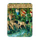 Magnet mit William Morris’ Tapestry Verdure with Deer and Shields (1891-1894). Eine grüne Hirschlandschaft, die aus einem Wasserbecken trinkt und von Blätter von Bäumen in einem grünen Wald gegessen wird. Über ihnen hängen die Schilde der Ritter des Runden Tisches. Ein großartiges Geschenk für Arthuriana-Liebhaber und Viktorianische Kunstsammler.