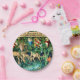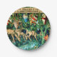 Teller mit William Morris Tapestry Verdure with Deer and Shields (1891-1894). Eine grüne Hirschlandschaft, die aus einem Wasserbecken trinkt und von Blätter von Bäumen in einem grünen Wald gegessen wird. Über ihnen hängen die Schilde der Ritter des Runden Tisches. Ein großartiges Geschenk für Arthuriana-Liebhaber und Viktorianische Kunstsammler.
