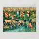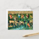 Postkarte mit William Morris’ Tapestry Verdure with Deer and Shields (1891-1894). Eine grüne Hirschlandschaft, die aus einem Wasserbecken trinkt und von Blätter von Bäumen in einem grünen Wald gegessen wird. Über ihnen hängen die Schilde der Ritter des Runden Tisches. Ein großartiges Geschenk für Arthuriana-Liebhaber und Viktorianische Kunstsammler.