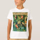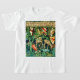 T - Shirt mit William Morris Tapestry Verdure with Deer and Shields (1891-1894). Eine grüne Hirschlandschaft, die aus einem Wasserbecken trinkt und von Blätter von Bäumen in einem grünen Wald gegessen wird. Über ihnen hängen die Schilde der Ritter des Runden Tisches. Ein großartiges Geschenk für Arthuriana-Liebhaber und Viktorianische Kunstsammler.