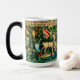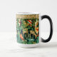 Zauberhafte Tasse mit William Morris’ Tapestry Verdure with Deer and Shields (1891-1894). Eine grüne Hirschlandschaft, die aus einem Wasserbecken trinkt und von Blätter von Bäumen in einem grünen Wald gegessen wird. Über ihnen hängen die Schilde der Ritter des Runden Tisches. Ein großartiges Geschenk für Arthuriana-Liebhaber und Viktorianische Kunstsammler.