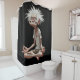 Dieses Bild zeigt eine humorvolle und surreale Abbildung eines verrückten Wissenschaftlers, der auf einem T - Shirt gedruckt wurde. Die Figur wird mit wilden, spitzen, weißen Haaren, übertriebenen Gesichtszügen wie großen, wölkenden Augen und einem breiten, zahnförmigen Grin und einem dünnen, zerbrechlichen Körper dargestellt. Er sitzt in einer meditativen Pose über Beine, wobei seine Hände Mudras bilden (symbolische Handgesten, die oft in der Meditation verwendet werden). Er trägt ein zerfetztes, gefärbtes weißes Shirt und kurze Hosen, was zu seinem exzentrischen und ungepflegten Aussehen beiträgt. Der Gesamtton des Bildes ist komisch und skurril, die Elemente der Science Fiction mit der östlichen Spiritualität vermischen. Der T - Shirt wird von einer Person getragen, deren Muskelarme und Armbanduhr teilweise sichtbar sind, was einen Kontrast zwischen der schweren Körperlichkeit des Trägers und der Absurdität der Grafik darstellt.