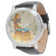 Uhr, Klassische Damenuhr mit schwarzen Lederarmband