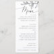 Lassen Sie Ihren Empfang mit dieser eleganten Schwarz-Weiß-Hochzeitskarte, die durch eine zarte Olivenzweig-Illustration hervorgehoben wird, höher schlagen. Das minimalistische Design hebt Ihre Speisen in einer gepflegten und stilvollen Gestaltung hervor und verleiht gleichzeitig eine Touch mediterranen Charmes. Ideal für moderne, rustikale oder italienische inspirierte Hochzeiten. Dieses Menü verbindet Eleganz mit Einfachheit, sodass Ihre Gäste sowohl das Essen als auch das Design genießen können.