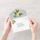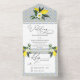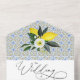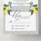 Mediterranes Lemon Thema Einladung Aquarellblau Fliesen, schöne gelbe Zitronen und weiße Blume. Ideal für eine Hochzeit in Urlaubsort oder eine Hochzeit im Freien - Alles in einer einmaligen Einladung mit RSVP Card