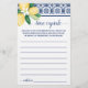 Lemons Blue Mediterrane Tile Time Kapselspiel Brautparty. Ändern Sie den Text in das Design. Für weitere Änderungen (Schriftart, Schriftart) klicken Sie auf Personalisieren, scrollen nach unten und klicken auf den Link "Bearbeiten mit dem Design-Tool". **Karo-Kollektion für alle passenden Designs** HOW TO PLAY: Gast wird eine Karte ausfüllen, um seine besten Ratschläge zu teilen, Vorhersage für das glückliche Paar