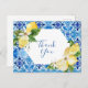 Mediterrane Lemon Blumenziegel Danke Karte Elegante moderne Aquarell Lemon Blumenfloral Blue Tile danke Karte.