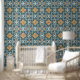 Add timeless elegance to your space with this Mediterranean-inspired tile wallpaper, featuring a stunning combination of rich blue and warm gold tones. The intricate floral and geometric motifs create a classic, handcrafted look that brings old-world charm to modern interiors. Perfect for accent walls, entryways, kitchens, or creative spaces, this design infuses any room with color, balance, and artistic flair.