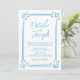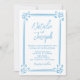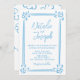 Diese Einladung ist perfekt für Ihre Hochzeit, wenn Sie eine elegante, einzigartige und leicht editierbare Einladung suchen. Eine elegante, einfache, minimalistisch weiße und blaue Hand gezeichnete mediterrane italy Hochzeitsvorlage Einladung. Das ist ein schlicht weißer Vintager Hintergrund auf der Vorderseite und ein handgezeichneter blühender Rahmen. Und blaue Hand geschrieben whimsical Braut und Bräutigam die Vornamen. Und auf der Rückseite got man ein handgezeichnetes Blumenmuster und anpassbaren QR-Code, sodass Ihre Einladungen online UAWG können. Und editierbare Infos erschwinglich und es ist auch digitale elektronische E-Einladung, wenn Sie gewollt, es per Text oder E-Mail zu senden. Alle Informationen können durch Anklicken des Buttons Personalisieren angepasst werden. So packen Sie es und machen Sie es zu Ihrem, sodass Sie verlobt und aufgeregt einladen .