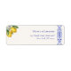 Add a beautiful finishing touch to your wedding envelopes with these elegant return address stickers from the "Mediterranean Blue & Lemon Branch" collection. Featuring a vibrant watercolor lemon accent and classic blue Azulejo tile motifs, these labels perfectly tie your Mediterranean-inspired stationery suite together.