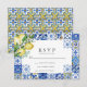 Mediterranean Blue Tile Citrus Lemon Wedding RSVP Karte