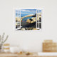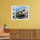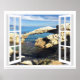 Beautiful Mediterranean rocky sea view, faux window scene, for a windowless office. Very realistic landscape optical illusion poster that would look great on an office or study wall.