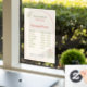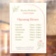 This premium window cling blends Mediterranean elegance with clean, professional design. A soft cream background is framed by a bold red arch, complemented by delicate illustrations of olive branches and floral accents. The warm color palette—featuring sage green and terracotta—adds a natural, creative touch that reflects your personal style.