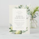 Schönes Naturthema mediterrane Brautdusche mit sanften grünen und grauen Schriftzeichen umrahmt von zarten Aquarellbildern von Grün, Blättern, Oliven und Zitronen. Eine elegante Wahl in einem natürlichen Farbschema für Freibad- oder Naturthemenduschen mit italienischem Flair.