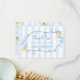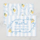 Schicken Sie mit dieser eleganten Zitronenkarte ein herzliches Dankeschön! Es ist mit Aquarelllemonen, zarten blauen Bögen und klassischen blau-weißen Streifen gestaltet und passt perfekt zu Ihrem mediterranen Babyduschthema. Eine süße und stilvolle Art, den Gästen für ihre Liebe und Geschenke zu danken.