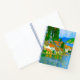 Journal in an impressionist style landscape of a small Mediterranean village with terracotta roofs and white walls, reflected in the water, and backed by mountains, with customizable text