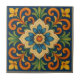 Machen Sie eine atemberaubende Aussage mit diesem farbenfrohen Zierkachel. Ein zentrales Kobaltblau und cremefarbenes Blumenmotiv ist wunderschön gerahmt durch warme orangefarbene Rollen und üppige grüne Blätter, alles Set vor einem tiefen, dramatischen blauen Hintergrund. Die Blume in der gelben Ecke tragen zu einem hellen Pop bei, wodurch diese Kachel perfekt geeignet ist, um jedem Raum eine luxuriöse und künstlerische Touch zu verleihen. Dieses Stück besticht durch ein extravagantes symmetrisches Design: eine zentrale Blüte in Blau und Creme ist umgeben von fließenden orangefarbenen Wellen und einem lebhaften grünen Laub. Das gesamte aufwändige Muster Pop dramatisch vor einem tiefen königsblauen Hintergrund, mit zauberhaften goldgelben Blumen, die die Ecken zieren. Inspiriert von klassischen handbemalten italienischen Keramiken, eignet sich diese Kachel ideal für atemberaubende Kulissen, beeindruckende Akzent-Wände oder ein reichhaltiges, raffiniertes Ambiente, um Kaminumgebung und Eingänge zu schaffen. Die hellgelben Blume vervollständigen dieses elegant gestaltete Stück. Diese Kachel ist eine außergewöhnliche Wahl für diejenigen, die eine lebendige Persönlichkeit und zeitlose Eleganz in ihre Küche, ihr Bad oder jeden Bereich, der einen besonderen künstlerischen Schwerpunkt wünscht, injizieren möchten.