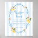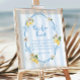 Fügen Sie Ihrer Babydusche mit diesem hübschen Schnuller Hunt Schild eine unterhaltsame und interaktive Drehung hinzu! Dieses Schild mit Aquarelllemonen, sanften blauen Bögen und klassisch-blauen Streifen lädt die Gäste ein, nach versteckten Schnullern zu suchen - eine fröhliche Aktivität für Ihre mediterran inspiriert Feier.