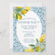 Das Design ist mit einem Mosaikboden aus blauen Fliesen und Zitronen in den gegenüberliegenden Ecken gestaltet. Ideal für ein italienisches, mediterranes oder an der Amalfiküste inspiriertes Party!
