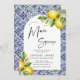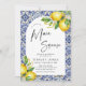 Mediterranes blaues Tiles Lemons Arch Brautparty Einladung