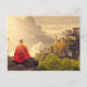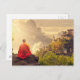 Fantasieanpassung eines Mönchs, der vor einem großen Tempel meditiert.