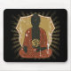 Buddha-Silhouette sitzt queresmit beinen versehenes in der dunkelorangefarbigen Robe, die mit dem Devanagari OM Symbol auf seiner Palme meditiert! Halbtonhintergrund-Schildhintergrund stellt ein starkes dennoch friedliches Buddha-Geschenk her!