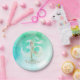 Yoga Studio Meditation Instructor / Life Coach / Heiler / Reiki Master / Massage Therapy Paper Plate. Elegant Green und Blue Watercolor Yoga Meditation Pose / Baumschule Pose / Vrksasana Pose und Om Symbol.