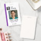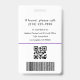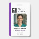 Eine berufliche Vorlage für das Abzeichen der Kinderbetreuung mit Platz für Ihr Foto, Name, Jobtitel, ID-Nummer und individuelles Logo. Dieses Abzeichen ist mit einer lila, sauberen Farbgebung konzipiert und eignet sich insbesondere für Kinderpfleger, Kinderärzte, Kinderlebensspezialisten und medizinisches Personal, das in Kinderkrankenhäusern oder Kliniken arbeitet. Auf der Rückseite befinden sich Platzhalter für einen Strichcode, QR-Code sowie verloren gegangene und gefundene Kontaktdaten für zusätzliche Sicherheit. Ideal für Krankenhäuser, pädiatrische Praxen und Gesundheitseinrichtungen, die eine individuelle Personalausweis benötigen.