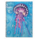 Original Aquarellmalerei von Sandra Gale, mit einem großen lila Gelee Fisch oder Medusa (männlich) mit langen schwimmenden Tendrillen, die zwischen den Blasen in der Tiefsee driften. Ein tolles Design für alle, die Meereslebewesen und die Tiefpunkte unserer Ozeane Lieben. Ein tolles Geschenk für Taucher, Surfer, Strandbäder oder Naturschützer!