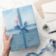 Meer, blauer Himmel und weiße Boote Landschaftsfotografie Urlaub Geschenkpapier.
