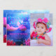 Diese Einladung verwendet Blau und Rosa als Hauptfarbpalette. Die Tiefe des Designs wird durch das sehr weit entfernte Erscheinungsbild der Fische berücksichtigt. Lichteffekte werden besonders im Meerjungfrau-Schwanz eingesetzt, um ihn zum Designerstar zu machen