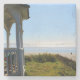 Meer, Sandstrand, Grüntöne und Hafen in der Nähe v Steinuntersetzer