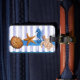 Original Aquarellmalerei von Sandra Gale, mit Sternfisch, Meerpferd, Schildkröten und Muscheln auf einem Hintergrund von senkrechten, lichtblauen Streifen. Das Design ist ausgezeichnet für den Sommer, die Zuhause, die Bungalows oder für alle, die den Strand, das Meer oder den Fisch Lieben.