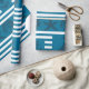 Darstellung mit nautischer Gestaltung auf weißem und blau gestreiften Hintergrund