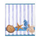 Original Aquarellmalerei von Sandra Gale, mit Sternfisch, Meerpferd, Schildkröten und Muscheln auf einem Hintergrund von senkrechten, lichtblauen Streifen. Das Design ist ausgezeichnet für den Sommer, die Zuhause, die Bungalows oder für alle, die den Strand, das Meer oder den Fisch Lieben.