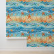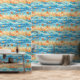 Meeresterne, Ozean, Welle und Wasser Meer Leben thematisch Muster in blau und orange.
