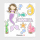 Niedliches Aufkleber-Set mit brünetter Meerjungfrau, Korallen, Fischen und vielem mehr. Personalisieren Sie den Namen, um zu lesen, was Sie gewollt haben. Verwendung für Handwerk, Geschenke, Dekorationen und mehr.