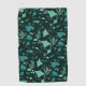 Cooles, schwarzes Golfhandtuch mit aquamarinen blauen Rochen. Stilvolle Rochen und Fische schwimmen unter Wasser.