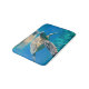 Unterwasseraufnahme einer Meeresschildkröte, die in kristallklarem Wasser direkt unter der Oberfläche schwimmt.