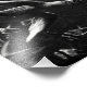 Schwarzweißfoto einer Meeresschildkröte, die in der Nähe eines Korallenriffs auf einem Foto schwimmt.