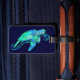 Eine gefährdete Seeschildkröte gemalt in den Ozean-Blues und -Grüntönen.