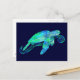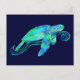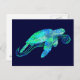 Eine bedrohte Meeresschildkröte, die in Blues und Grüntönen der Ozeane gemalt wurde.